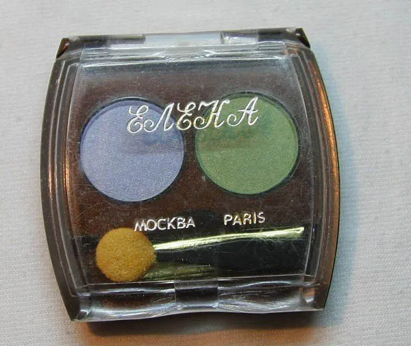 Отже, першими у списку були тіні. У СРСР була дуже популярна палетка тіней від “Елена”. У таких палетках нейтральних кольорів взагалі не було, тож усі громадянки СРСР могли нафарбувати очі сірим, фіолетовим, зеленим чи блакитним кольором. Саме ці кольори стали своєрідним символом СРСР.